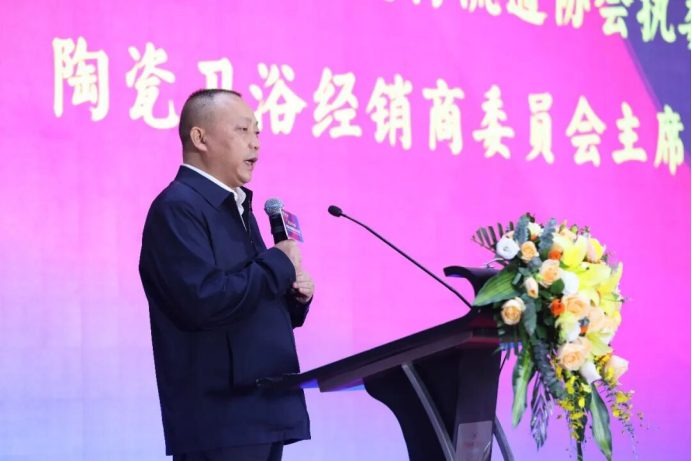 会议伊始,中国建筑材料流通协会副会长、佛山市工商业联合会执委罗青先生,中国建筑材料流通协会执委副会长李作奇先生,佛山市卫浴洁具行业协会执行会长兼秘书长刘文贵先生依次发表致辞,他们表示在面对复杂多变的市场环境,企业要打破行业边界,汇聚多元思维,推动陶瓷卫浴领域与科技、设计、环保等深度融合,共同探索可持续、智能化、人性化的行业新未来。