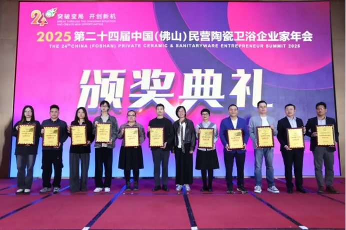近日,2025第二十四届中国(佛山)民营陶瓷卫浴企业家年会在广东·佛山盛大举行,该年会由佛山市总商会主办,以“跨界融合,探寻陶卫行业未来发展新方向”为主题,汇集业界精英、主流媒体,共同聚焦陶瓷卫浴产业热点,寻求陶卫业未来的发展之道。