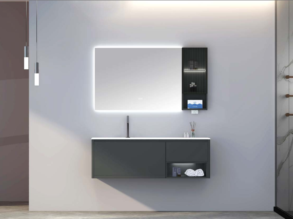 智能镜柜功能:左侧正面 LED 灯条,带人体感应开关,