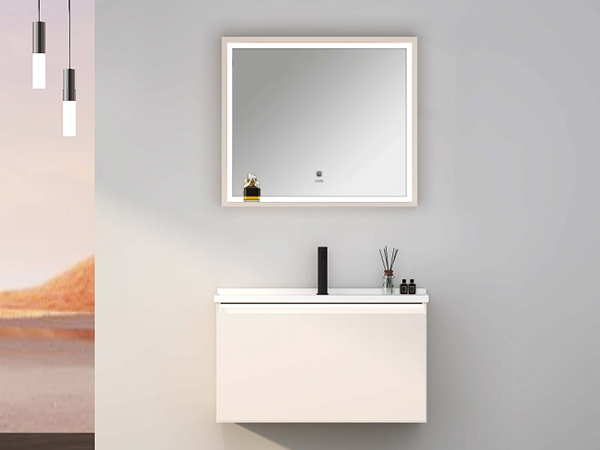 感应镜柜:嵌入式 4mm 第三代无铜环保镜片,四周 LED 灯带,单